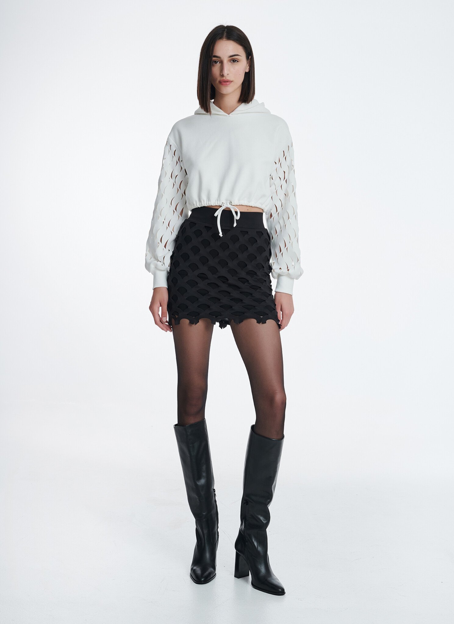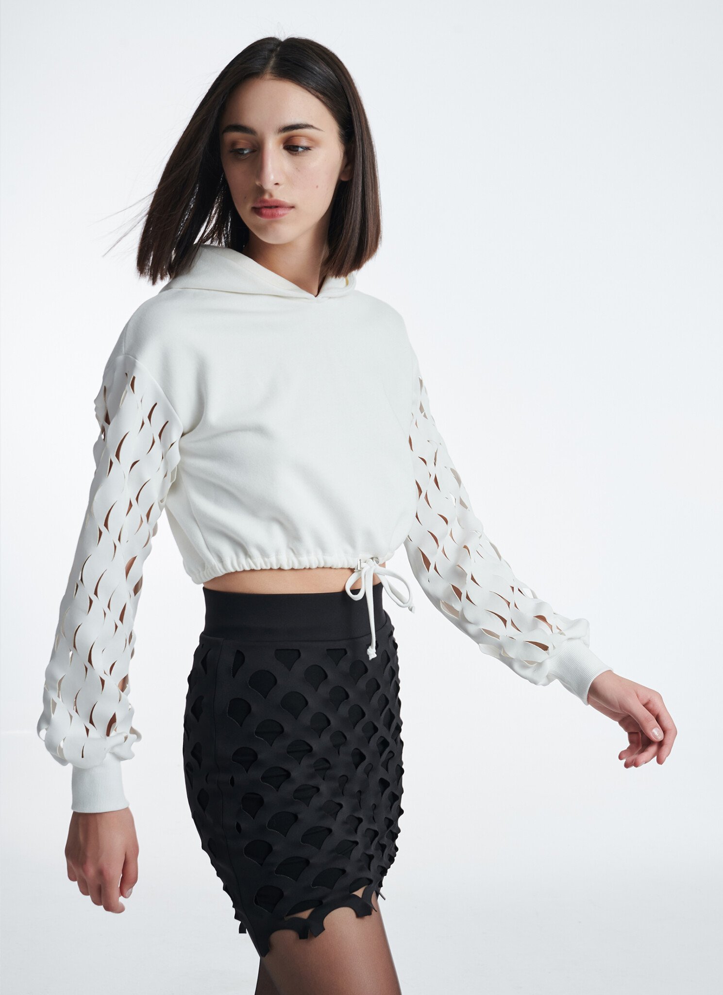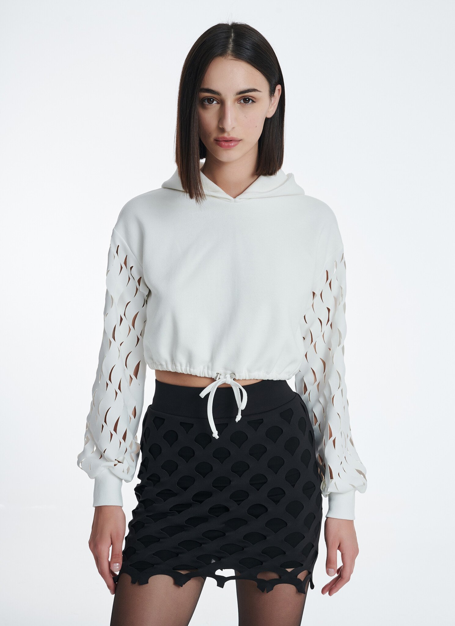Hoodied sweatshirt in stretch fabric. This hoodie is made from cotton blend fabric and has sleeves with an all-over organic pattern. It’s cropped to hit the narrowest part of your waist, so it’ll nicely complement a high-rise skirt. Also availvable in: black Cotton-polyester & scuba fabric Rib finishing Hand wash / no tumble dry / low iron. Η αγορά γίνεται μέσω του επίσημου site του CUTCUUTUR — συνεργαζόμαστε μαζί τους ως affiliate και χαιρόμαστε πολύ γι αυτό. Η διαθεσιμότητα ενδέχεται να αλλάζει — αν το βλέπεις τώρα, μπορεί να μην το ξαναβρείς!