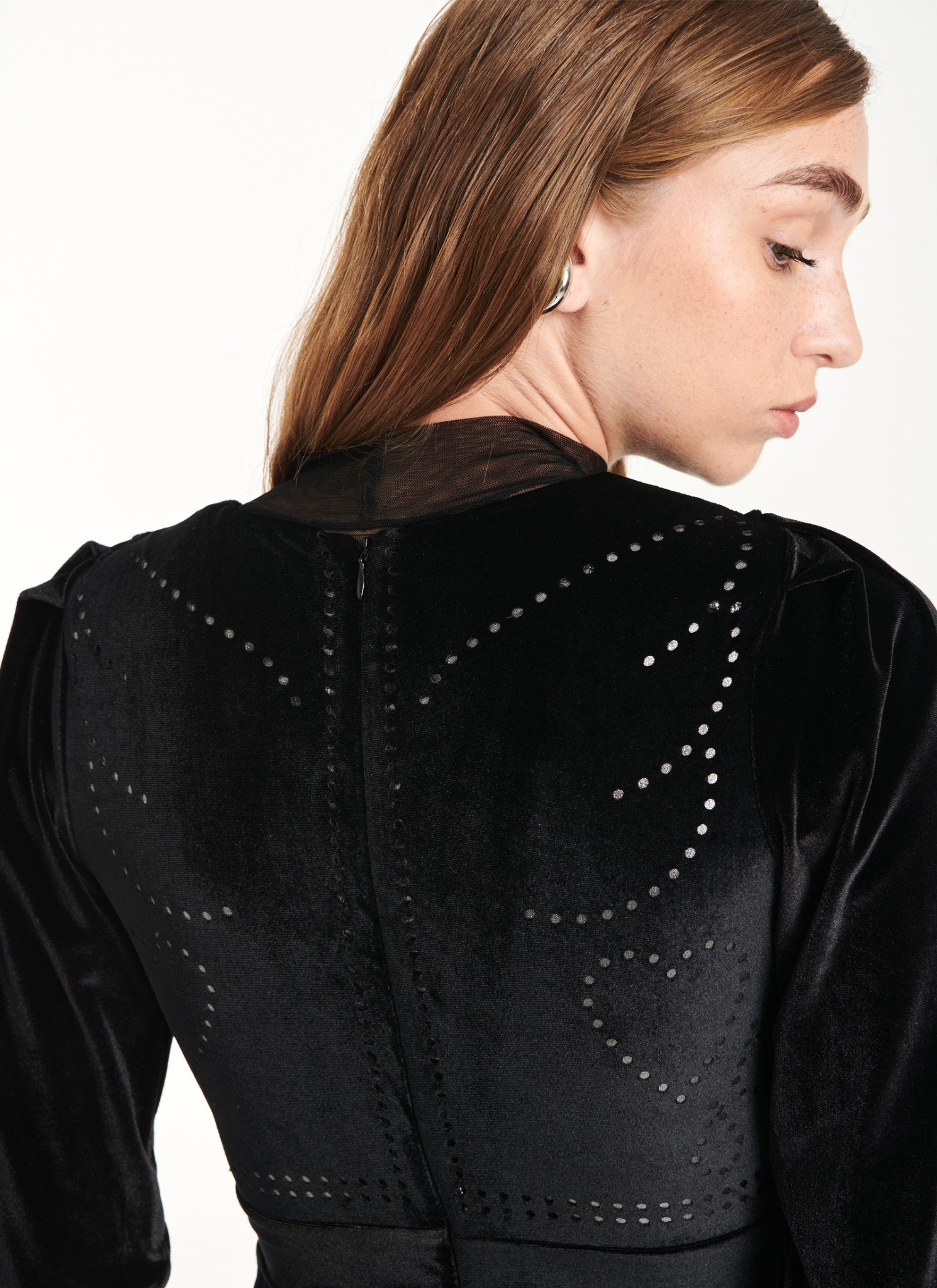 Dress in non-stretchy fabric with silver details. This version of the LBD is made for dancing in, from the cut to the lushious velvet and the metallic details. This slightly stretchy piece has gathered padded shoulders that create a soft volume and a body conscious skirt to create a flattering silhouette. Wear it layered over your transparent bodysuit and your ancle boots. Also available in: blue 95% PU – 5% EL Velvet body, metallic lining, zip fastening at back Hand wash / no tumble dry / low iron . Η αγορά γίνεται μέσω του επίσημου site του CUTCUUTUR — συνεργαζόμαστε μαζί τους ως affiliate και χαιρόμαστε πολύ γι αυτό. Η διαθεσιμότητα ενδέχεται να αλλάζει — αν το βλέπεις τώρα, μπορεί να μην το ξαναβρείς!
