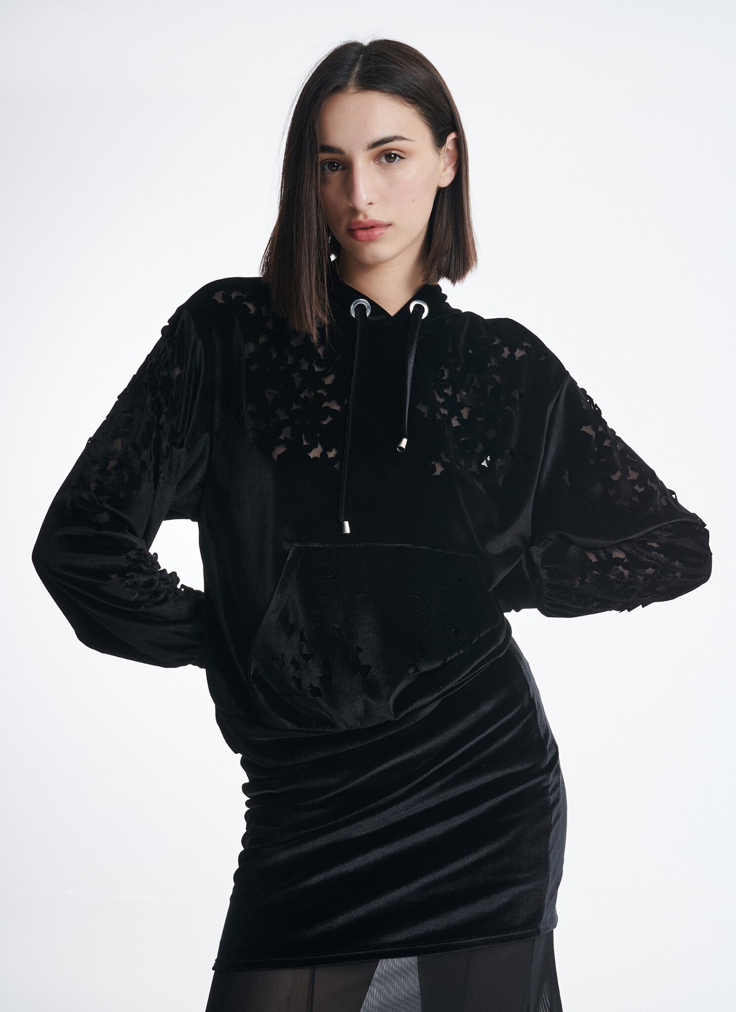 Hoodied sweatshirt in stretch fabric. This hoodie is made from ultra-soft velour in a relaxed silhouette that’s enhanced by dropped shoulders and has a front pouch pocket and mesh lining. Wear yours with a mini skirt layered over our maxi mesh skirt. Also availvable in: blue Velour fabric Mesh lining Elasticated waistband and cuffs Hand wash / no tumble dry / low iron. Η αγορά γίνεται μέσω του επίσημου site του CUTCUUTUR — συνεργαζόμαστε μαζί τους ως affiliate και χαιρόμαστε πολύ γι αυτό. Η διαθεσιμότητα ενδέχεται να αλλάζει — αν το βλέπεις τώρα, μπορεί να μην το ξαναβρείς!
