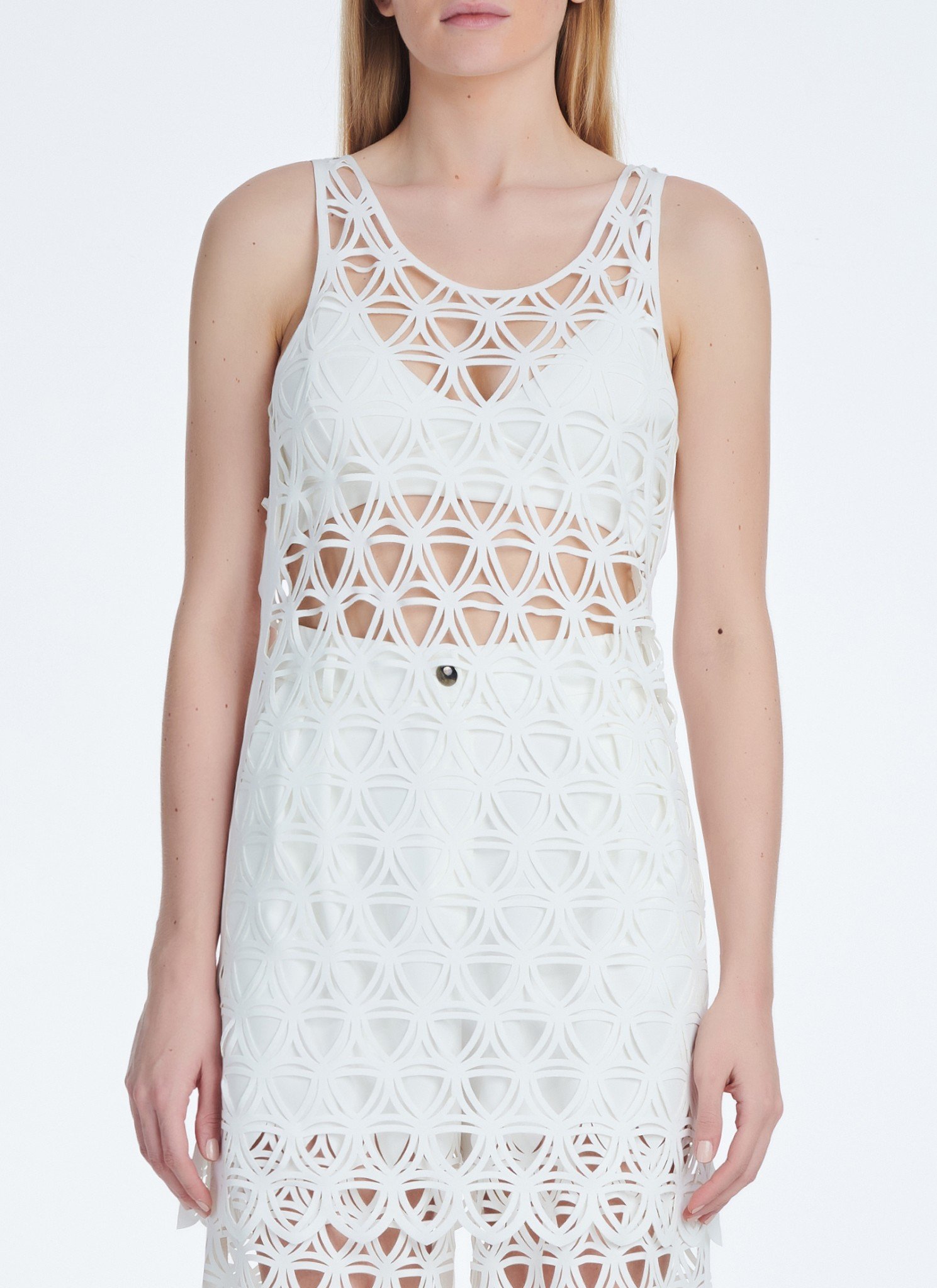 Oversized Tank-Top in slightly stretchy fabric. This piece will instantly turn heads. Featuring an all-over net-inspired print, this versatile piece is cut from soft crepe for a relaxed fit. Wear it over your swimsuit or over a bra and the matching pants. Also available in black Crepe fabric Raw edge finishing Hand wash / no tumble dry / low iron. Η αγορά γίνεται μέσω του επίσημου site του CUTCUUTUR — συνεργαζόμαστε μαζί τους ως affiliate και χαιρόμαστε πολύ γι αυτό. Η διαθεσιμότητα ενδέχεται να αλλάζει — αν το βλέπεις τώρα, μπορεί να μην το ξαναβρείς!