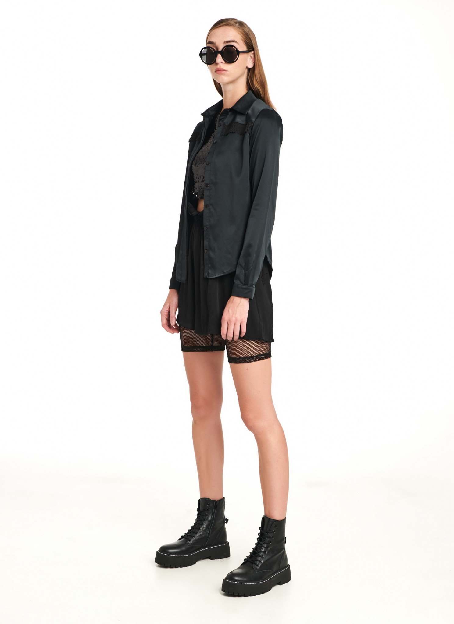 Shirt in non-stretchy fabric with rayon laser-cut details and button fastenings through front. This shirt will transition from the office to cocktail hour with ease. Made from lustrous black satin, it has classic details like a pointed collar and buttoned cuffs and it is updated with rayon laser-cut trims. Wear yours over your shimmering cropped top and paperbag-waist shorts. Also available in: pink 98% pes-2% ea Hand wash / no tumble dry / low iron . Η αγορά γίνεται μέσω του επίσημου site του CUTCUUTUR — συνεργαζόμαστε μαζί τους ως affiliate και χαιρόμαστε πολύ γι αυτό. Η διαθεσιμότητα ενδέχεται να αλλάζει — αν το βλέπεις τώρα, μπορεί να μην το ξαναβρείς!