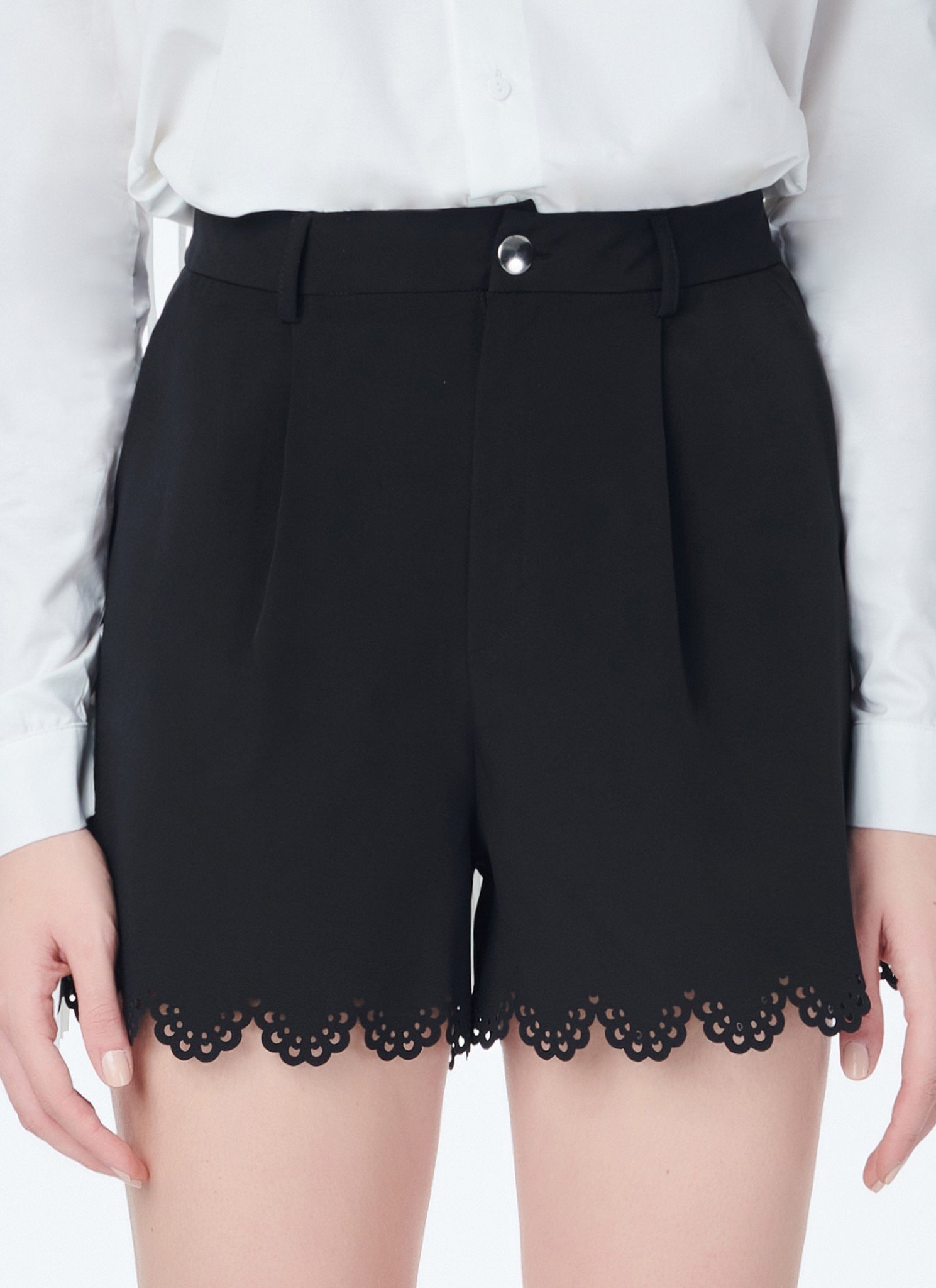 Shorts in slightly stretch fabric. These shorts are made from soft crep for a slightly loose fit and sit high on the waist. They have a hemline detailed with a lace-incpired laser-cut print and look perfect with a white shirt. Also available in: white Crep fabric Zip fastening & button at front Raw edge finishing. Hand wash / no tumble dry / low iron. Η αγορά γίνεται μέσω του επίσημου site του CUTCUUTUR — συνεργαζόμαστε μαζί τους ως affiliate και χαιρόμαστε πολύ γι αυτό. Η διαθεσιμότητα ενδέχεται να αλλάζει — αν το βλέπεις τώρα, μπορεί να μην το ξαναβρείς!