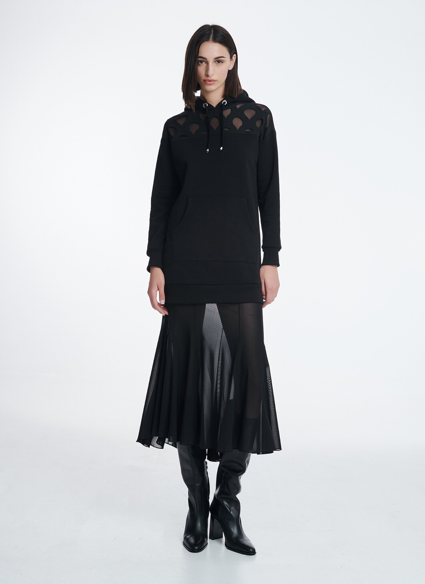 Sweatshirt dress in stretchy fabric with laser-cut details. This hooded sweatshirt dress is a must for the well-appointed fall wardrobe. Cut from cotton for a loose fit it has a panel with the signature laser cut pattern. Style it with our mesh skirt for a kickass look. Also available in: white Cotton fabric Crepe details Mesh lining Rib finishing Hand wash / no tumble dry / low iron. Η αγορά γίνεται μέσω του επίσημου site του CUTCUUTUR — συνεργαζόμαστε μαζί τους ως affiliate και χαιρόμαστε πολύ γι αυτό. Η διαθεσιμότητα ενδέχεται να αλλάζει — αν το βλέπεις τώρα, μπορεί να μην το ξαναβρείς!