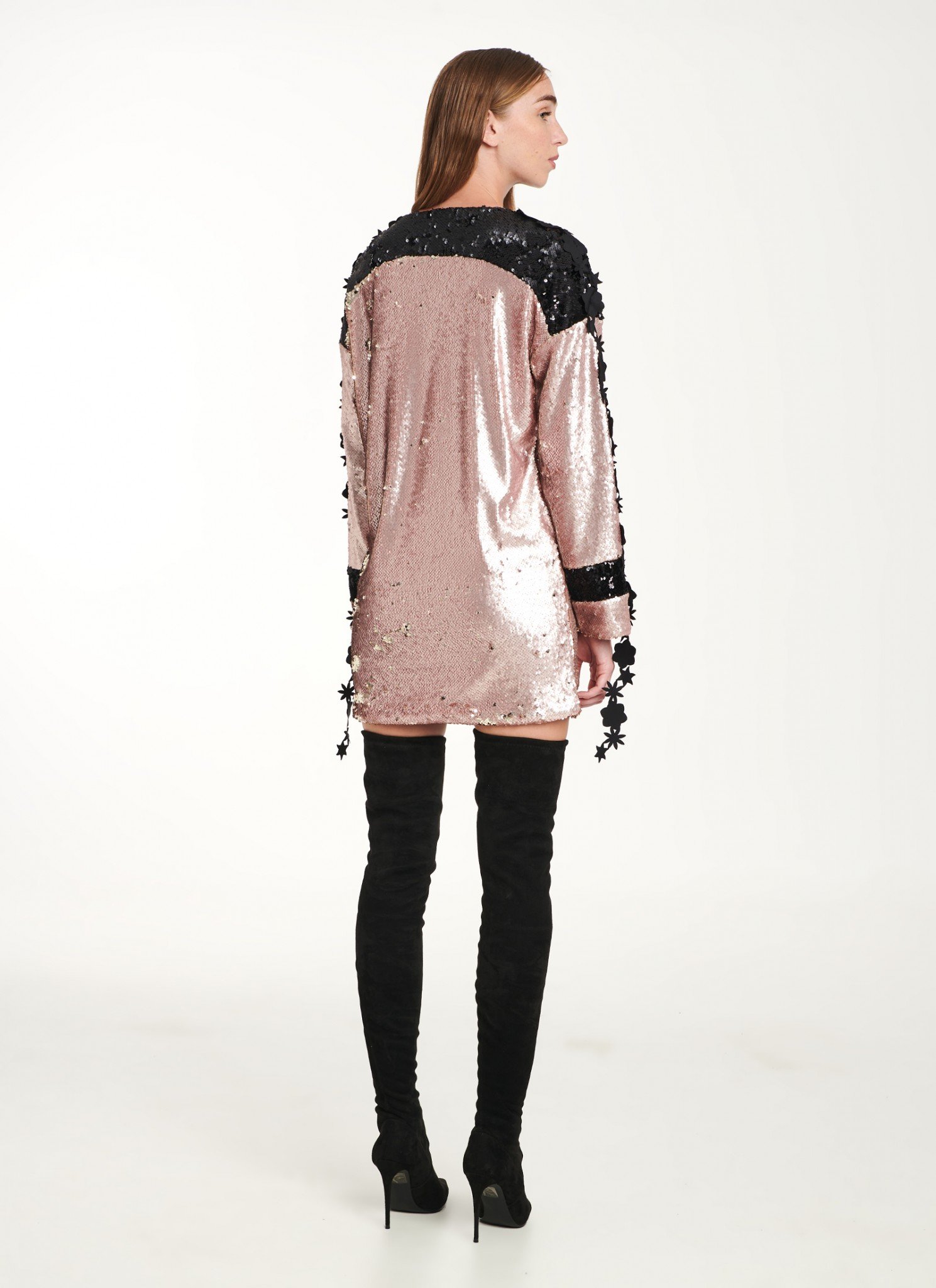 Sweater dress in pink and black sequins with black laser-cut details at sleeves. This sweater dress is saturated with light-catching pink and black pailletes – a shimmering reference to ’80s raves and Manchester’s house music heyday. This style is cut for a loose fit and features laser-cut details along its sleeves. Wear it with your over-the-knee boots for a night out. Also available in: black 100% pes Interlock lining, scuba details Hand wash / no tumble dry / low iron. Η αγορά γίνεται μέσω του επίσημου site του CUTCUUTUR — συνεργαζόμαστε μαζί τους ως affiliate και χαιρόμαστε πολύ γι αυτό. Η διαθεσιμότητα ενδέχεται να αλλάζει — αν το βλέπεις τώρα, μπορεί να μην το ξαναβρείς!
