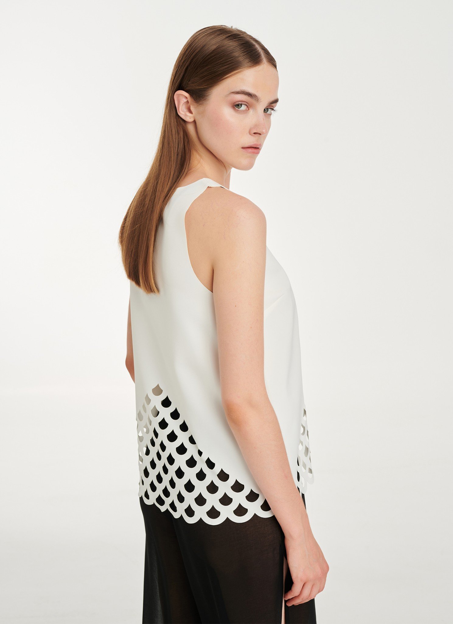 Tank top in slightly stretchy fabric with laser-cut pattern at the hem. Crafted from smooth crepe, this tank top is cut for a comfortable loose fit and an geometrical pattern defines its hem. Pair yours with the sheer pants ftom our beachwear line for a summerish look. also available in: beige, black Crepe fabric Raw edge finishing Hand wash / no tumble dry / low iron. Η αγορά γίνεται μέσω του επίσημου site του CUTCUUTUR — συνεργαζόμαστε μαζί τους ως affiliate και χαιρόμαστε πολύ γι αυτό. Η διαθεσιμότητα ενδέχεται να αλλάζει — αν το βλέπεις τώρα, μπορεί να μην το ξαναβρείς!