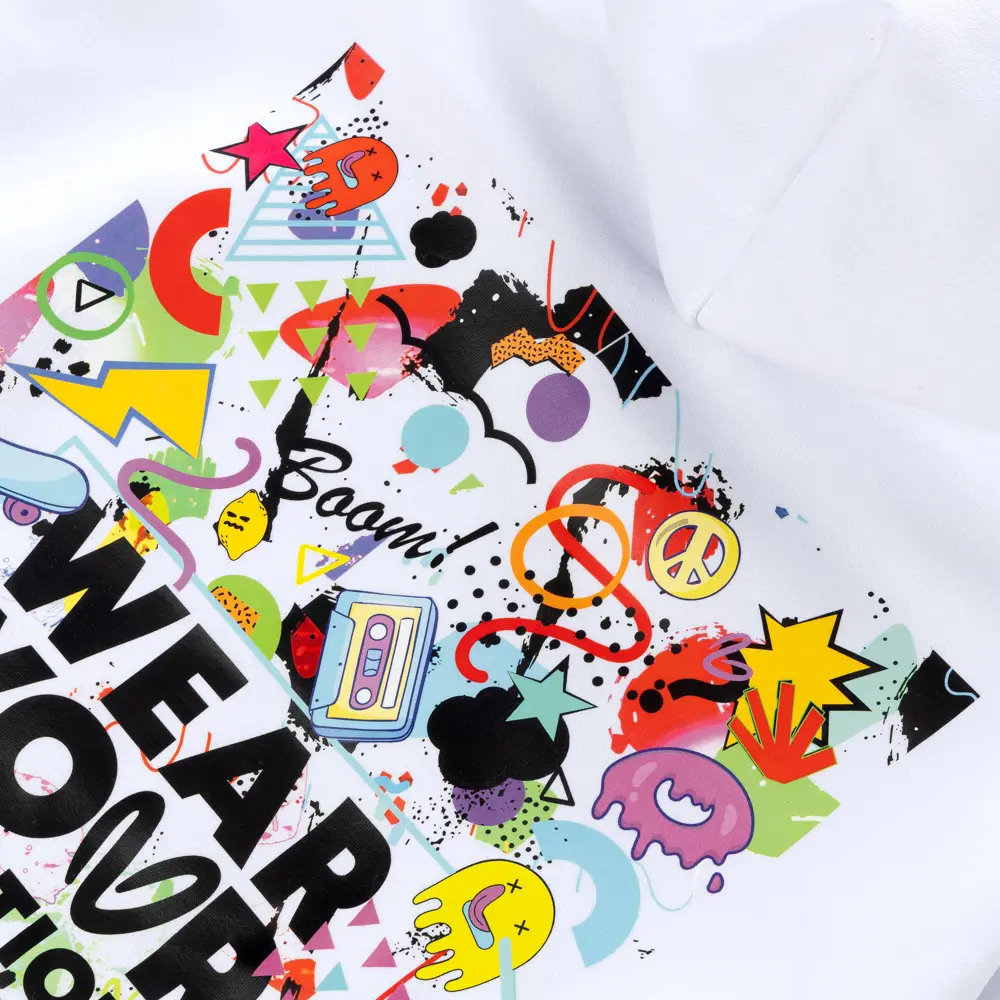 Λευκό Hoodie με τσέπη καγκουρό και κουκούλα. Στάμπα Groovy στην πλάτη και κέντημα λευκό logo V στο στήθος. Rib τελείωμα και μανσέτες. Φούτερ με άνετη και απαλή εφαρμογή για το σχολείο και την βόλτα. 70% βαμβάκι, 30% πολυεστέρας. Σημείωση: Το μοντέλο της φωτογραφίας είναι 15 χρονών και φοράει Μέγεθος: S